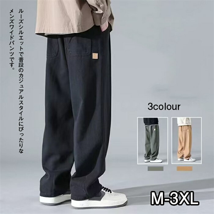 ズボン ワイド パンツ メンズ ズボン 大きいサイズ 調整紐 ウエストゴム 人気 無地 春服 秋服 薄手M-3XL
