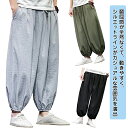 月中セール★P10倍 チノパンツ メンズ ズボン ワイドパンツ サルエルパンツ ボトムス 大きいサイズ S~2XL ブラック カーキ ウエストゴム 調整紐 9分丈 綿スラブ 快適 春 夏 秋 冬 ゆったり 無地 人気 クリスマスプレゼント