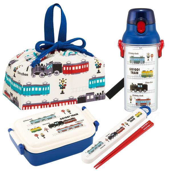 GO!GO!TRAIN お買得4点セット 抗菌 角型お弁当箱 450ml 箸&箸箱 巾着 クリアプラ水筒 電車 トレイン