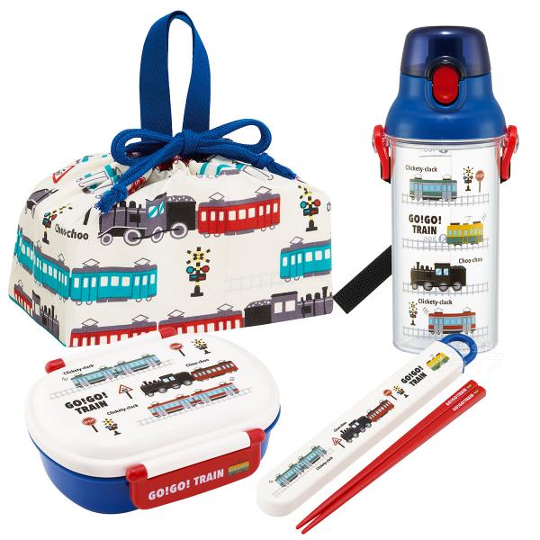GO!GO!TRAIN お買得4点セット 抗菌 お弁当箱 中子付 360ml 箸&箸箱 巾着 クリアプラ水筒 電車 トレイン