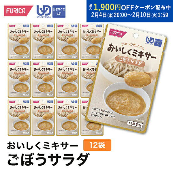 おいしくミキサーごぼうサラダ(12袋入り) 介護食 ペースト セット レトルト ホリカフーズ ユニバーサルデザインフード 区分4 かまなくてよい ミキサー食 やわらか食 介護食品 手軽 流動食 福祉 高齢者 お年寄り