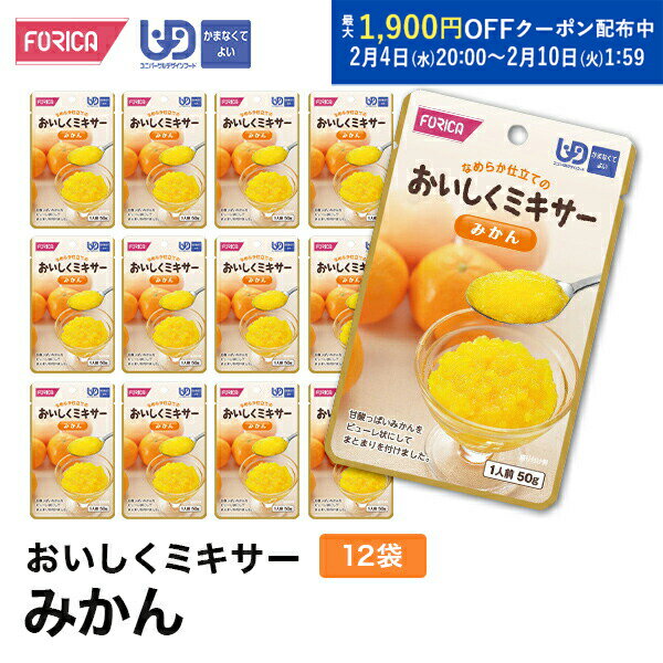 おいしくミキサーみかん(12袋入り) 介護食 ペースト セット レトルト ホリカフーズ ユニバーサルデザインフード 区分4 かまなくてよい ミキサー食 やわらか食 介護食品 手軽 流動食 福祉 高齢者 お年寄り