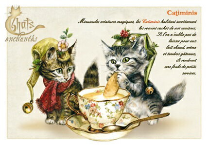 再入荷!仏蘭西猫のグリーティングカード【ミルクネコ】独特の色合いと図案ユニークネコのポストカードフランスから☆メール便対応!