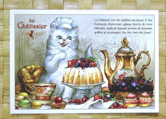 仏蘭西猫のグリーティングカード♪【スイーツキャット】独特の色合いと図案ユニークネコのポストカードをフランスのセンスで楽しむ