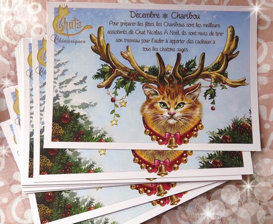 仏蘭西猫のシーズングリーティングカード【トナカイのクリスマスキャット】ファンタジー&ドラマチックユニークネコのポストカードフランスのセンス香るメール便OK!