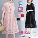 レース ワンピース ロング丈 ゆったり きれいめ 夏服 春夏対応 体型カバー M〜4L 半袖 5分袖 長袖 秋対応 大人 上品 ママ フォーマル 黒 赤 白 ピンク 通気性抜群 総レース 涼しい dd101t2t2l6