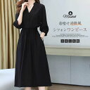 ワンピース レディース Vネック 長袖 無地 シフォン シャツワンピース ロング ワンピ プルオーバー ウエストマーク 紐 ハイウエスト 通勤 OL エレガント 新作 春 夏 大きいサイズ 体型カバー カジュアル 着痩せ オフィス おしゃれ 20代 30代 40代 50代 大人 送料無料