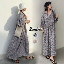 ワンピース レディース ロングワンピース フレアワンピース ロング丈 ワンピ ロング マキシ丈 綿麻風 キレイめ 長袖 七分袖 花柄 フレアワンピース 上品 体型カバー ゆったり シンプル かわいい 春 夏 秋 大きいサイズ カジュアル 20代 30代 40代 50代 送料無料