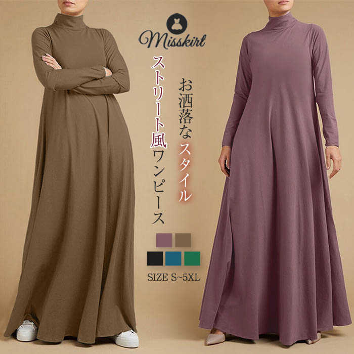 ワンピース レディース ロングワンピース 長袖 無地 ロング ワンピ マキシ丈 ロングワンピース ストリート 大きいサイズ ハイネック ゆるつとワンピース ゆったり 体型カバー 春 秋 冬 お洒落 着痩せ カジュアル シンプル 可愛い 20代 30代 40代 50代 可愛い 送料無料