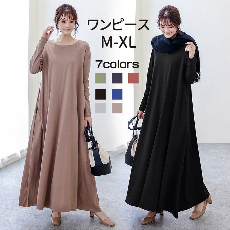 【期間限定 20%OFF】 ワンピース 長袖 春 秋 レディース 20代 30代 40代 ファッション カジュアルロング 無地 クルーネック シンプル ロング丈 ポッケトあり 大人 ゆったり リラックス らくちん ナチュラル 着痩せ カジュアル お出かけ 通学 通勤 体型カバー 50代