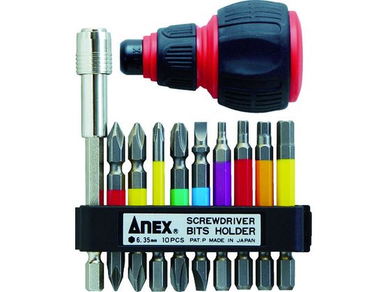 【レビュー投稿で100円OFFクーポン】【お取り寄せ】アネックス カラービット&エクステンションホルダーセット ハンドル付 ACMH9-EH ドライバー ビット 作業工具 作業用品 工具