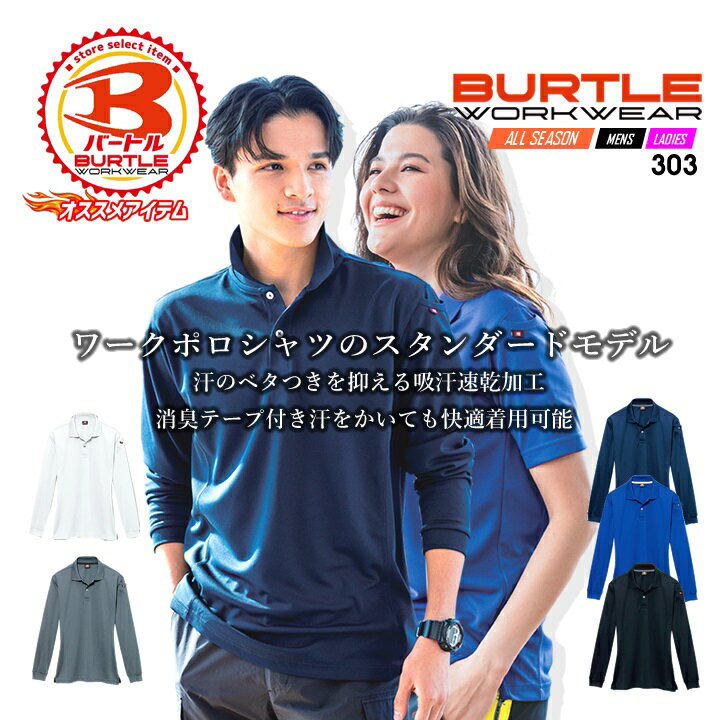 バートル ポロシャツ 長袖 メンズ 303 涼しい 清涼感 爽やか 吸汗速乾 ストレッチ 消臭テープ ユニフォーム 制服 春夏 作業服 作業着 BURTLE