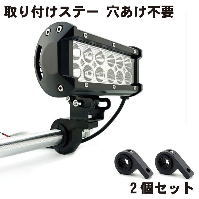 互換品マウントステー 2個セット 汎用 アルミ ブラケット 取り付けステー 穴あけ不要 取付簡単 補助灯 作業灯 フォグランプ ワークライト LEDライトバー バイクバンパー パイプ 挟み込み