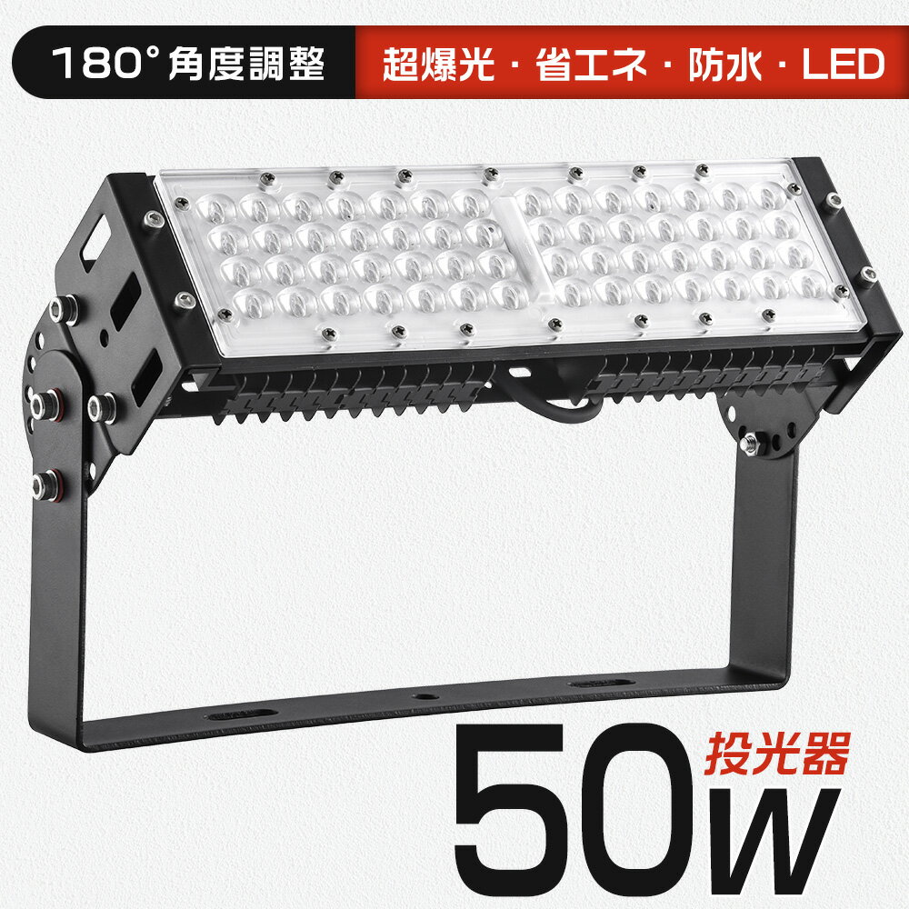 LED投光器 50W 全光束8000lm 超高輝度 500W相当 防水IP65 led作業灯 LED投光機 超薄型 広範囲照射可 スポットライト 水銀灯 ハイベイライト 高天井照明 看板照明 高天井用led照明 ステージ照明 屋外 ワークライト 防犯 明るい 看板スポットライト 二年保証【昼白色】