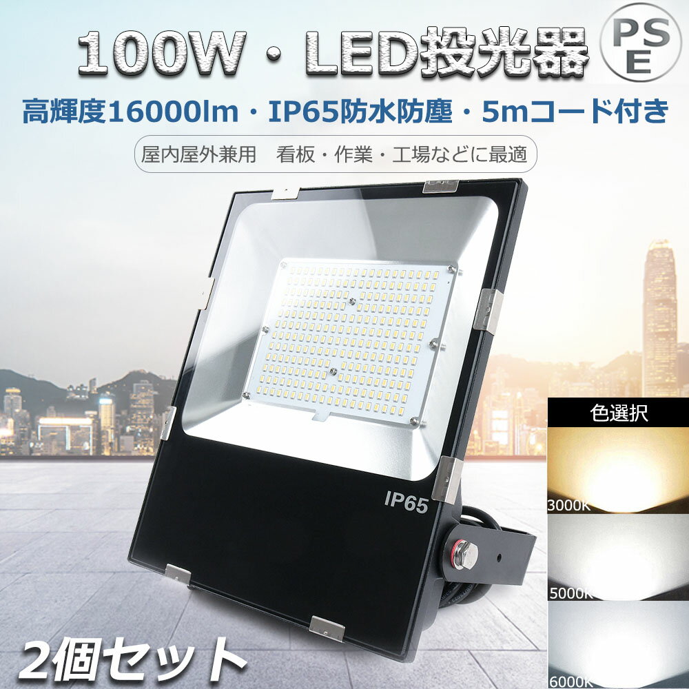 【2個セット】LED投光器 100W LED作業灯 LED 投光器 100W 1000W相当 超爆光 16000lm 投光器 LED 屋外 防水 IP65 ワークライト LED作業灯 作業灯 LED 100V/200V LED 作業灯 100W LED 投光器 広角120度 体育館 デパート 看板 防犯灯 集魚灯 駐車場灯 PSE取得済【二年保証】