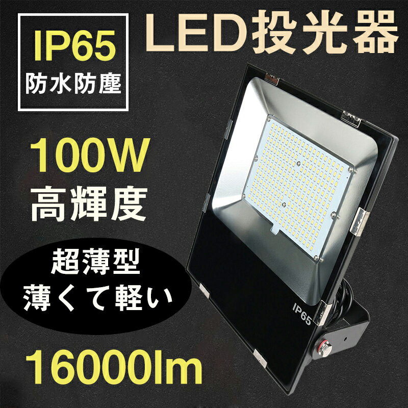 【薄型 軽量 超爆光】投光器 100W 16000lm (※水銀ランプ1000W 相当) LED投光器 昼光色(6000k) )防水IP65 5M配線 led投光器 led作業灯 270度調整可能 MEAN WELL電源内蔵 投光器 看板灯 集魚灯