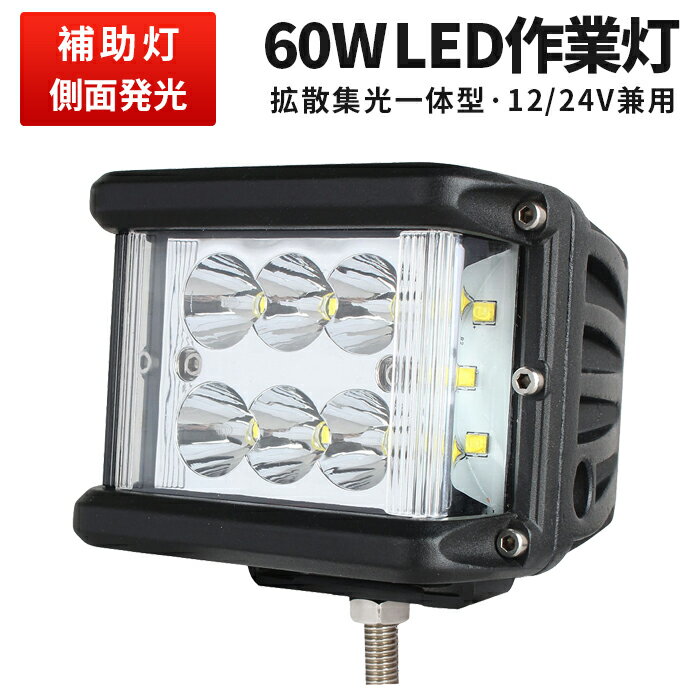 作業灯 LED LED作業灯 ワークライト LEDワークライト 【1台】24v 24vハイパワー 12v/24v 兼用 フィリップス製5W高出力端子12発 1年保証 ノイズ対策 60W 最新型PCレンズ 60W 船舶用 フォグランプ