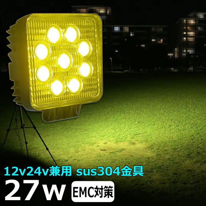 LEDワークライト led作業灯 黄色 黄色光 イエロー 乱反射 漁船 led ライト 27w イカ釣り 集魚灯 LED投光器 バックランプ 船 デッキライト led 作業灯 12v24v 広角 船舶 フォグランプ 路肩灯 補助灯 タイヤ灯 荷台灯
