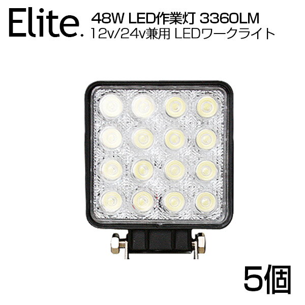 【即納】送料込【5個セット】狭角★48W 16連 LED作業灯 3360LM 12v/24v兼用 LEDワークライト ホワイト 屋外照明用 防水仕様!LEDサーチライト 小型 船舶/各種作業車対応 角型 LED 作業灯バックライト/ローライト/フォグランプ/トラック