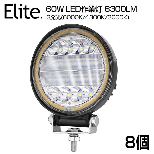 【8個セット】送料無料 3発光モード OSRAM製 60W LED作業灯 6300LM 丸型 LEDワークライト 12v/24v兼用 狭角 ホワイト 屋外照明用 防水仕様!LEDサーチライト 小型 LED作業灯 バックライト/ローライト/フォグランプ/トラック/船舶/各種作業車対応