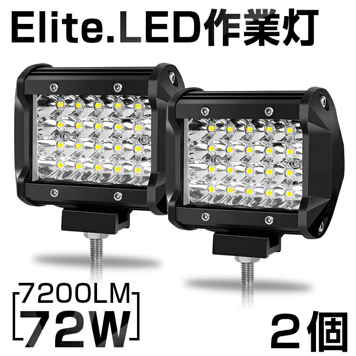 【即納】 2個セット 送料無料 高輝度 72W LED作業灯 7200LM 角型 12v/24v兼用 LED ワークライト ホワイト 屋外照明用 防水仕様!LEDサーチライト 小型 船舶/各種作業車対応 バックライト/ローライト/フォグランプ/トラック 1年保証