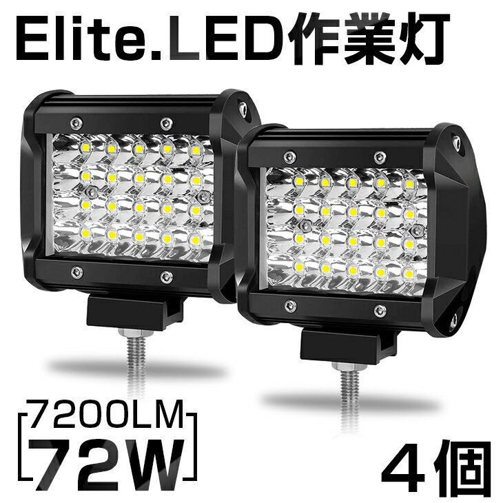 【即納】4個セット 送料無料 高輝度 72W LED作業灯 7200LM 角型 12v/24v兼用 LED ワークライト ホワイト 屋外照明用 防水仕様!LEDサーチライト 小型 船舶/各種作業車対応 バックライト/ローライト/フォグランプ/トラック 1年保証