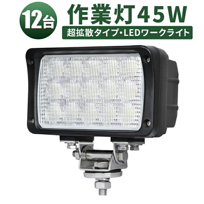 楽天ランキング1位! 【12台1ケース】90度超広角 超拡散タイプ ノイズ対策 45wLEDワークライト作業灯12v 24v兼用 1年保証 PCレンズ 304ステンレスブラケット ワークライト45w作業灯 LED45W作業灯