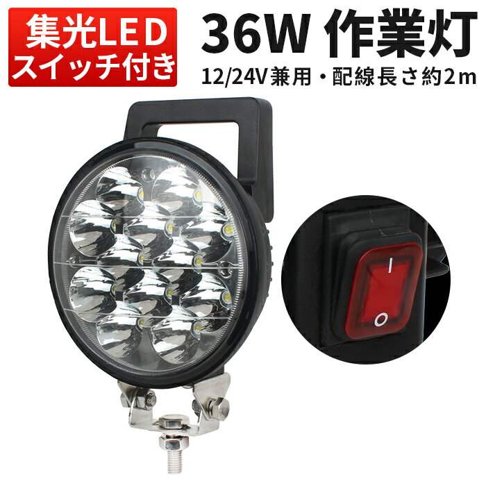 作業灯 LED LED作業灯 ワークライト 【1台】 24v 12v PCレンズ 304ステンレスブラケット 36w スイッチ付(配線長2M) 12v/24v対応 丸 36W トラック 作業灯 スイッチ付き