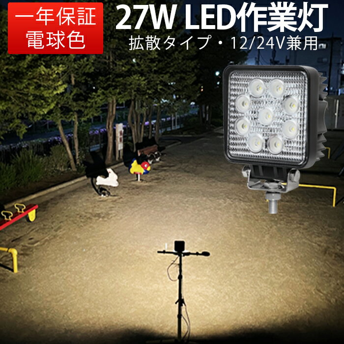 楽天ランキング1位! 作業灯 LED ワークライト LEDワークライト 【1台】 電球色 最大14ヵ月保証 27w9連 12v/24v対応 代引可 広角・狭角選択自由 角 ノイズレス対応 PCレンズ 304ステンレスブラケット 27W