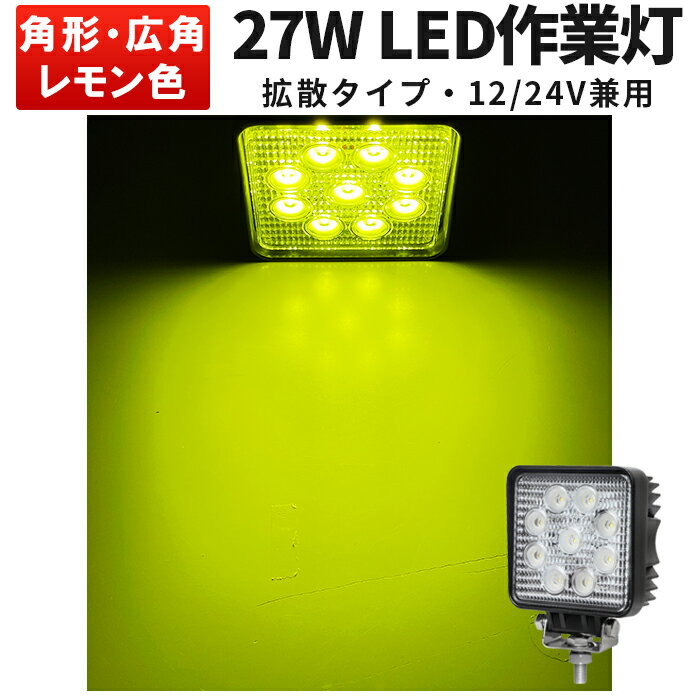 作業灯 LED ワークライト LEDワークライト 【1台】トラック・トラクター・軽トラの補助灯 黄色 イエロー レモン色 黄色 イエロー レモン色 ◆最大14ヵ月保証 27w 12v/24v対応■代引可 ノイズレス対応 PCレンズ 304ステンレスブラケット 27w