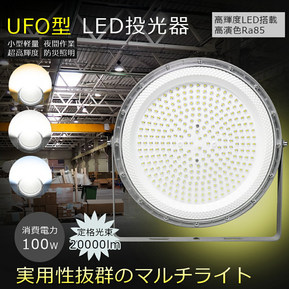 限定キャンペーン LED投光器 100W 全光束20000LM 高天井用LED照明 LED 投光器 LEDサーチライト ステー LED照明器具 ワークライト LED作業灯 ブラケットライト LED 作業用ライト スポットライト 電球色 昼白色 昼光色 夜間作業 現場工事 駐車場 公園 運動場 PSE認証 1年保証