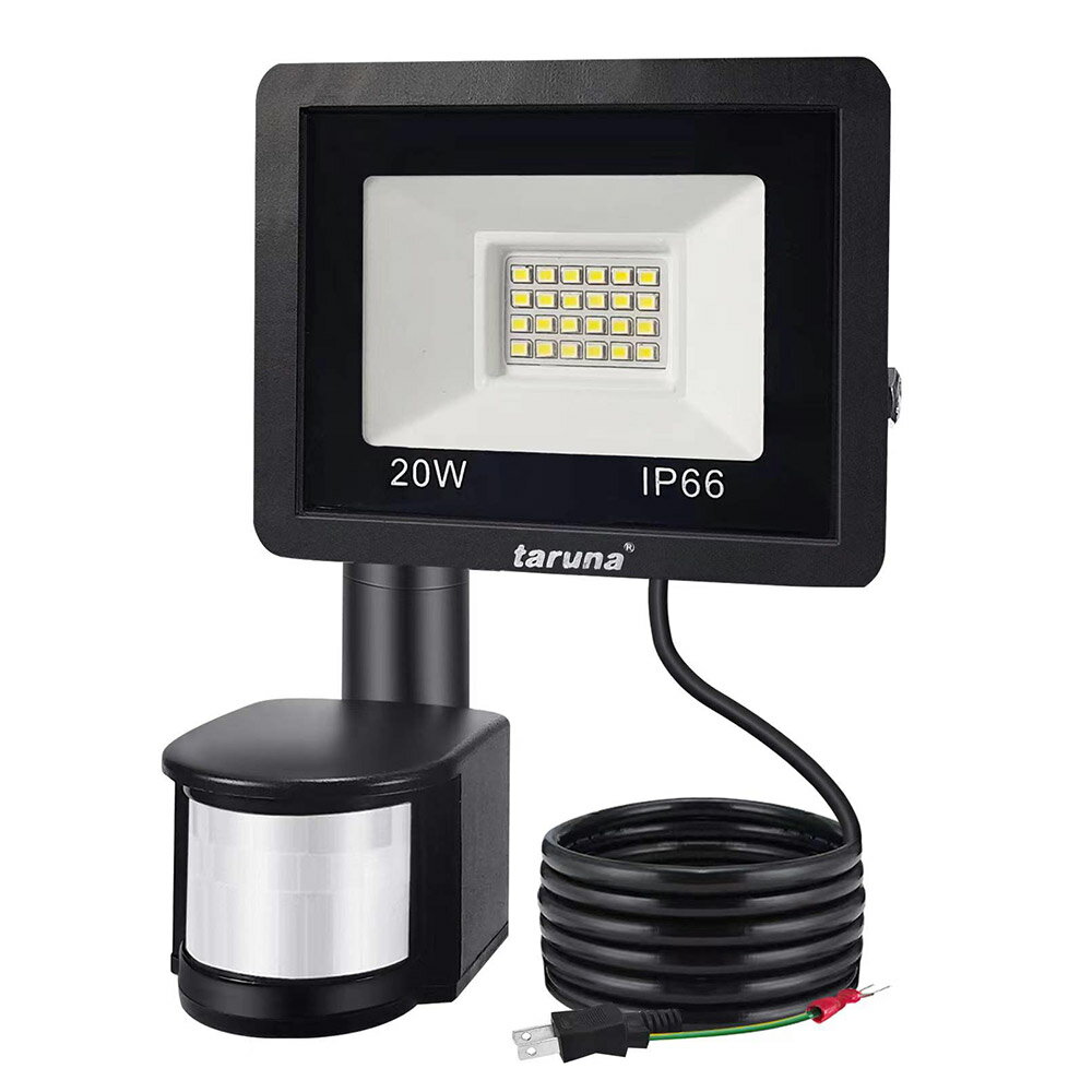 【即納】1台 センサーライト 20W LED投光器 屋外 昼光色 6500K 2200LM 作業灯 防犯ライト IP66 LED 100V適用 薄型 広角ライト 人感センサー コンセント式 センサー部360°自由回転 防水 高輝度 省エネ 庭 駐車場 玄関灯 廊下【PSE認証済 2Pプラグ】1年保証 送料無料