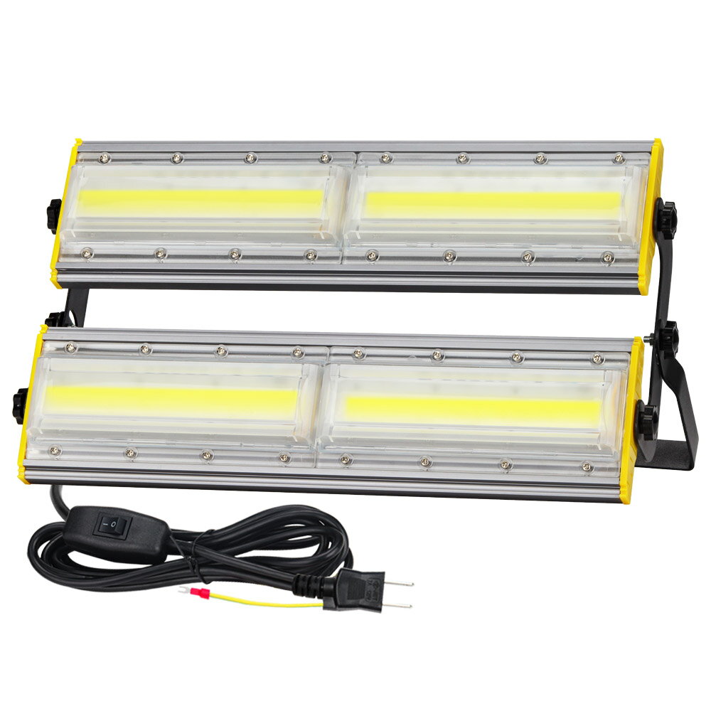 【即納】【2個セット】スイッチ付き LED 投光器 16000LM 100W COBチップ LED投光器 昼光色 6500K 1年保証 AC80-150V プラグ・コード 防水加工 軽量[ledライト 看板灯 作業灯 駐車場灯 ナイター 屋内 屋外 照明 船舶 人気]送料無料 PSE