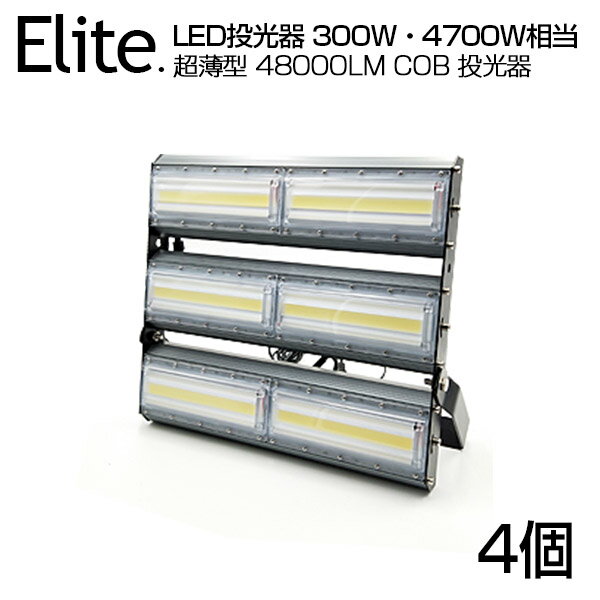 【4個セット】【即納】LED 投光器 48000LM 300W・4700W相当 COBチップ LED投光器 昼光色 6500K 広角240度 PSE 1年保証 AC 90-240V プラグ・コード付き 防水加工 ライト照明 軽量[ledライト 集魚灯 作業灯 駐車場灯 屋内 屋外 船舶 人気]送料無料