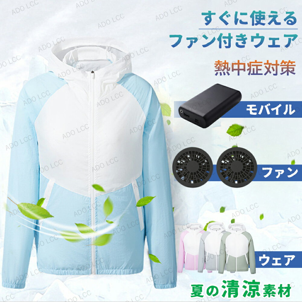 「ファン2個+バッテリー」ファン付き作業服 セット クールウェア バッテリー ファンセット ベスト フルセット 冷却服 涼しい服 作業着 電動ファン付 ウェア ワークウェア 3段階風量調節 大風量 薄型 UVカット 撥水加工 通気性 男女兼用