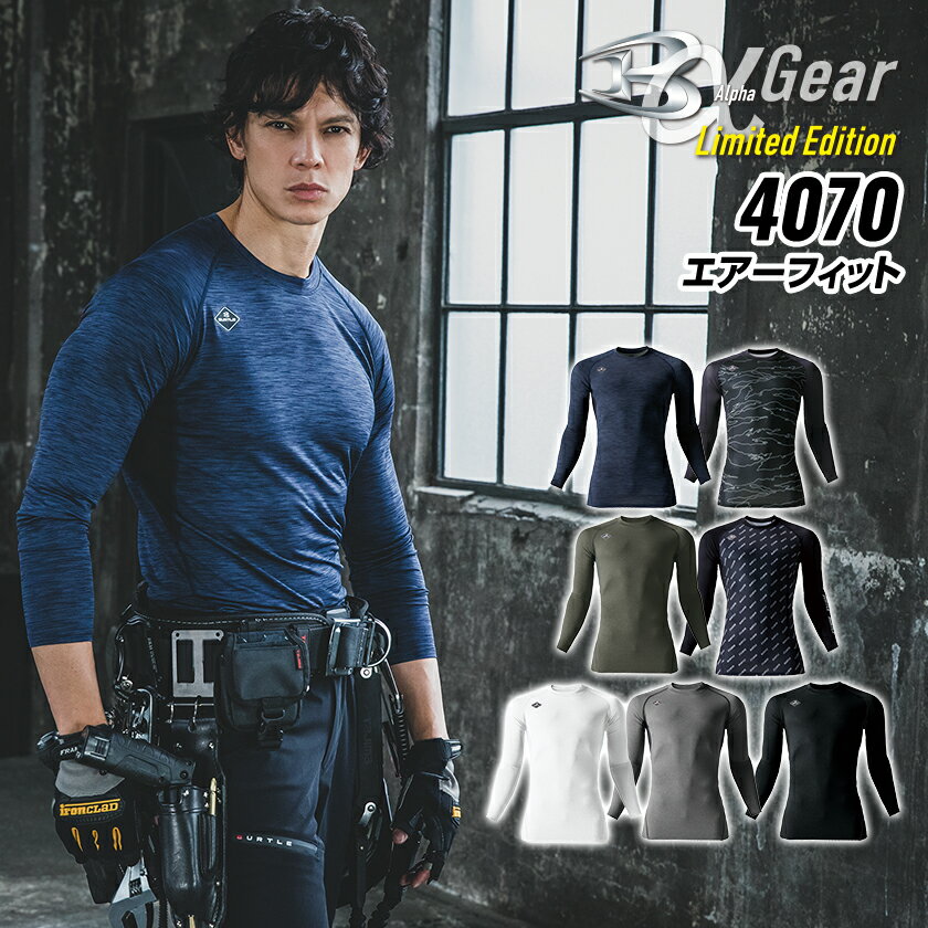 バートル 4070 SERIES 汗ばむワークシーンに欠かせない、軽さ(エアーフィット)と ドライな着用感が快適に持続するクールコンプレッションシリーズ 商品情報 バートル エアーフィット 4070 商品名 バートル エアーフィット 4070 長袖コンプレッション サイズ バートル エアーフィット 4070 S・M・ L ・ XL・XXL カラー バートル エアーフィット 4070 45.インディゴ 58.ホワイトカモ 68.ミルスグレー 71.バーニー 29.ホワイト 52.バーク 35.ブラック 素材 バートル エアーフィット 4070 表地:ポリエステル92%・ポリウレタン8% メッシュ:ポリエステル100% クールストレッチ(伸長率40%以上) 吸汗速乾加工・UVカット(UPF45) お取り扱い上の注意 ・この商品は、素材に伸縮性のあるポリウレタンを含みます。 ・縮みの原因となりますので、乾燥機の使用はお避けください。 ・特性上、年月の経過で劣化し、伸縮率が低下してきます。 ・特性上、肘抜けが発生する場合がございます。 対象 バートル エアーフィット 4070 建設 建築 運送 倉庫 営業 配達 大工 電気 設備 工場 現場 男性 メンズ 女性 レディース 用途 バートル エアーフィット 4070 日焼け防止 紫外線対策 温度調整 怪我予防 汗対策 汚れ防止 猛暑対策 熱中症対策 作業着 作業服 現場服 エアークラフトおしゃれ作業服 バートル エアーフィット 4070 おすすめポイント ・軽量性、吸汗速乾、UVカット(UPF45)と快適な機能を有するクールストレッチ素材 ・フラットロックシーム縫製と招集テープの機能性が着用時の不快感を軽減 ・男女ユニセックスの着用に対応 製造元 株式会社バートル 新しい街をつくる建設現場、便利で豊かな暮らしに欠かせない製造工場や物流システム。 バートルは、この国の発展と成長を支える現場のプロフェッショナルたちにふさわしいワークウェアを徹底追及。 快適な着心地を提供する機能性、長く安心して使用できる高品質、男女ともにスタイリッシュな着こなしができるデザイン、そしてサイズ等々、あらゆる視点から一切の妥協を排したりリアルワークウェアを提案しています。 どこまでも機能的に、どこよりもカッコよく。 日本のワークシーンとともに進化し続ける、それがBURTLEです。 ALPHA GEAR Limited Edition BYGear Alpha Limited Edition ワークウェアには無かったブランドという発想! ワーカーの気持ちを上げる、 特別感を取り入れた それが BURTLE ALPHA GEAR!! 私たちBURTLEは、控えめなデザインや画一性を大切にするワークウェア業界の中で 敢えて目立つデザインやトレンドを意欲的に取り入れてきました。 それはファッションなどの“ブランド”が持つパワーに共感したからです。 "ブランド"には、 それを持つ人に自信を与え、 特別感をもたらす力があります。 そうした人の気持ちを上げるパワーをワークウェアにも活用できないか、 BURTLEのアイテムを身につけた人々が自信を持ってイキイキと仕事をし、 最高のパフォーマンスを発揮する、そんなワークウェアブランドになりたい、 それが私たちBURTLEが掲げた目標です。 今期もコレクション性の高いアイテムを揃えました。 "BURTLE ALPHA GEAR" で特別を感じてください。 ※BURTLE ALPHA GEARはリミテッド (数量限定生産品) です。数量限定生産のため、完売の際はご了承ください。 ご留意事項 商品写真はできる限り実物の色に近づけておりますが、お客様が使用するパソコンのモニター環境により色の変化が感じられる場合がございます。 バートル 春夏 2025 NEW 新作 工事 設備 土木 整備 リホーム DIY 農作業 ストレッチ