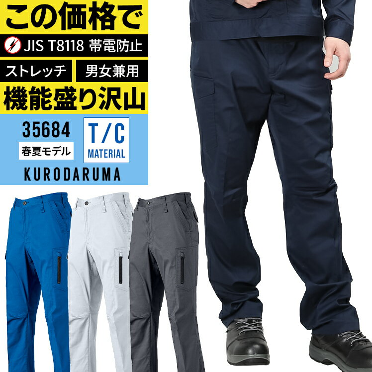 【2024春夏新作】 KURODARUMA カーゴパンツ 作業服 春夏用 男女兼用 35684 クロダルマ 作業着 SS-6L