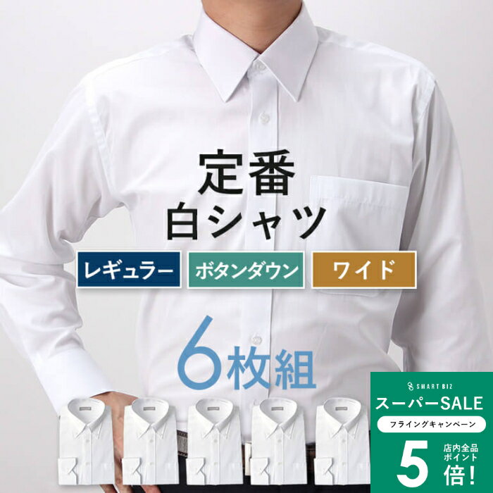 \MAX50%OFFクーポン配布中/ 【便利な6枚セット】選べる襟型3種・サイズは5サイズ展開!ボタンダウン レギュラーカラー ワイドカラー 長袖ワイシャツ 白シャツ メンズ 長袖 Yシャツ サイズ ビジネス クールビズ 形態安定 送料無料 カッタ