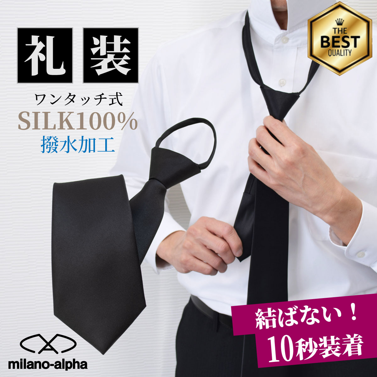 【5%OFFクーポン配布中】ネクタイ 黒 ワンタッチ 黒ネクタイ シルク 100%簡単 快適 ネクタイ ワンタッチネクタイ 礼服 礼装 葬式 法要 お通夜 弔事 法事 告別式 冠婚葬祭 お彼岸 お盆 便利 簡単 ファスナー 送料無料 r102