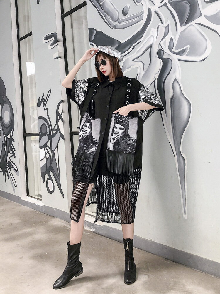 トップス Tシャツ ワンピース 個性派ファッション 原宿系 ダンス衣装 DANCEファッション ステージ衣装 HIPHOP系 ストリート系 インパクトあり!プリントデザイン トップス Tシャツ