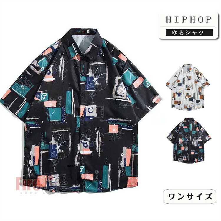 【即納あり】柄シャツ シャツ レディース 半袖 幾何学柄 ペイント柄 爽やか アート イラスト プリント 総柄 ダンス 衣装 ヒップホップ コスチューム 韓国ファッション ストリート系ファッション 大きいサイズ 個性的