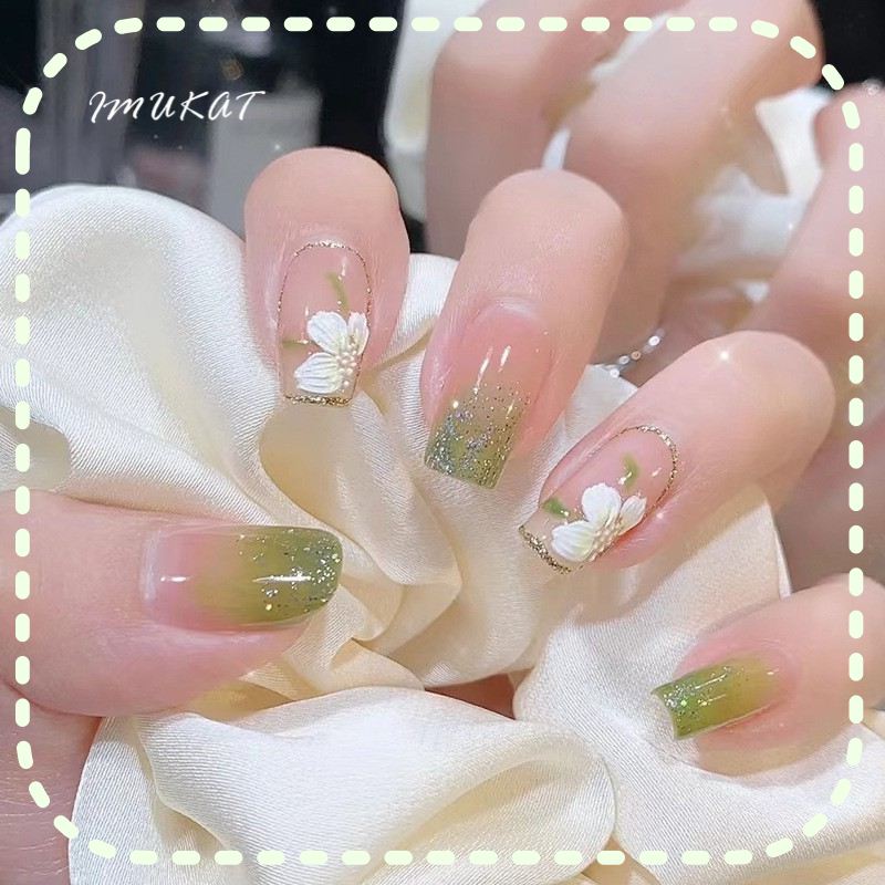 ネイルチップ グリーン ホワイト 金粉 はな 光沢感 個性的 可愛い 高級感 優しい おうちネイル アートおしゃれ アート 美しい 秋 冬 披露宴 成人式 デート 卒業式 紅葉狩り 遊園地 送料無料 大人気