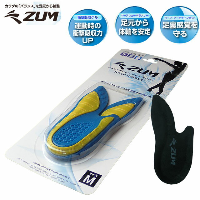 インソール ハーフ 衝撃吸収 中敷き レディース キッズ スニーカー ダンス ウオーキング ランニング 立ち仕事 スポーツ アーチ かかと 土踏まず 偏平足 足底筋膜炎 足裏痛み 立ち仕事 ZUM スム ZIN502H【RSL】