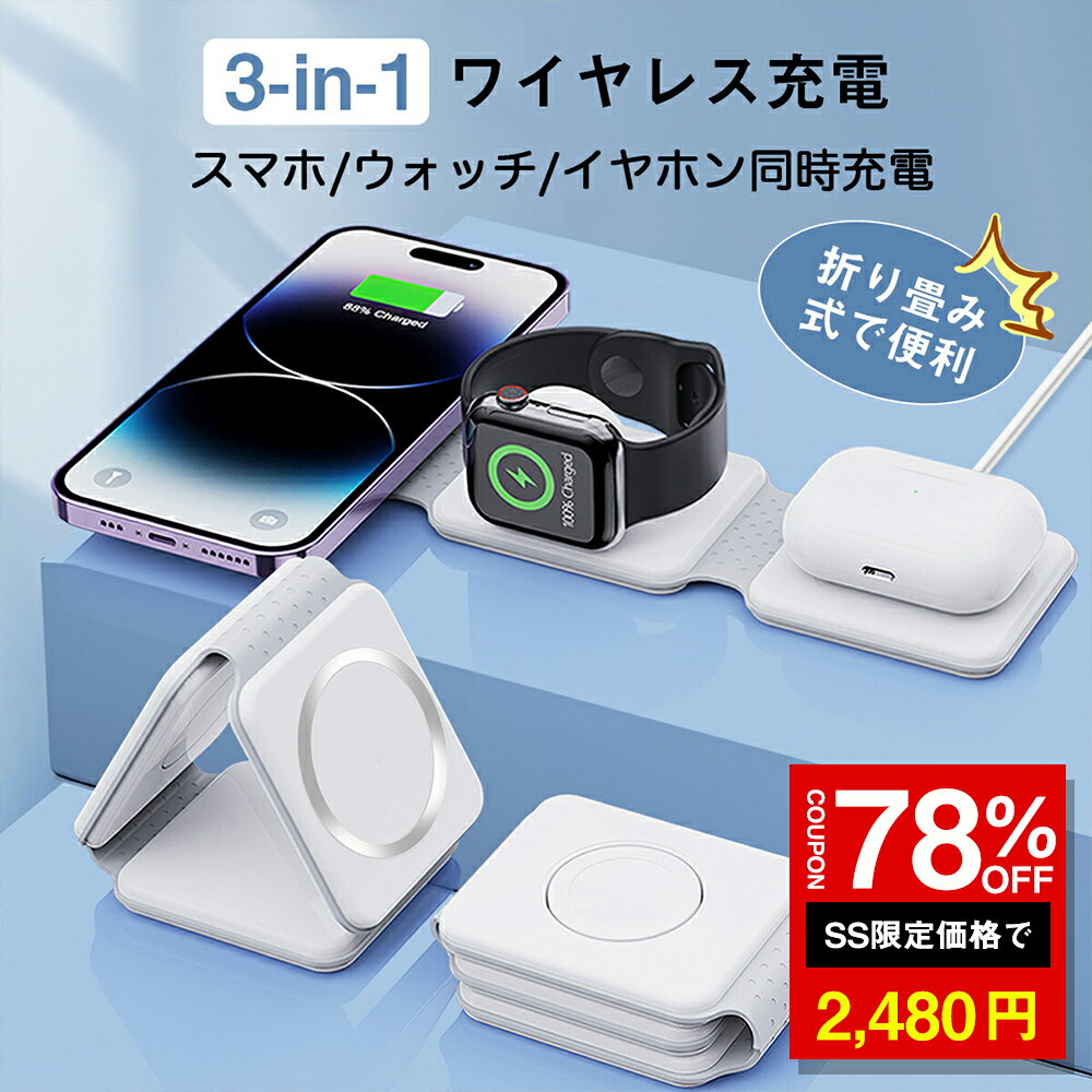 \SS激安 78%OFF→2480円/【楽天1位獲得】ワイヤレス充電器 3in1 MagSafe充電器 15W急速充電器 apple watch 充電器 折り畳み QI充電器 マグネット充電器 軽量 小型 スマホスタンド 3台同時充電 アップルウォッチ イヤホン