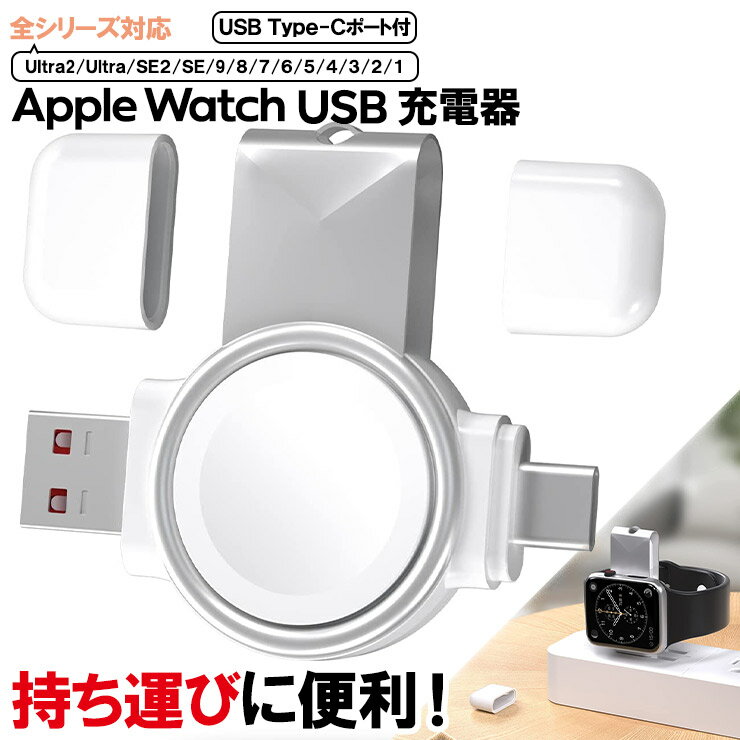 【4日20時〜50%OFFクーポン対象】 Apple Watch 全シリーズ対応 充電器 USBチャージャー アップルウォッチ series 10 Ultra 3 Ultra 2 Ultra SE2 SE 9 8 7 6 5 4 3 2 1 38mm 40mm 41mm 42mm 44mm 45mm 46mm 49mm 磁気充電器 持ち運び便利 コンパクト 急速充電 type-c