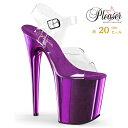 20cm ヒール 厚底 キャバ サンダル Pleaser プリーザー 大きいサイズ 小さいサイズ ハイヒール ピンヒール ポールダンス ストラップ 厚底サンダル クリア 紫 パープル クロム レディース メンズ 20cmヒール 20センチ ヒール フラミンゴ FLAM808/C/PPCH 即納 取寄 公式