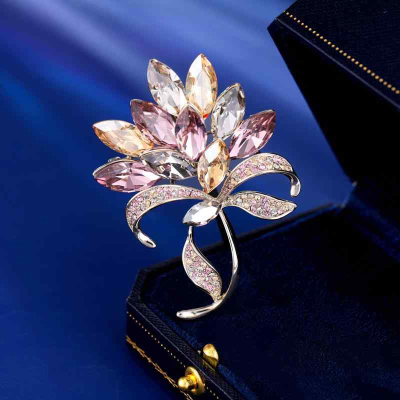 ブローチ レディース 豪華 クリスタル フラワー エレガント 多機能 固定 大ぶり 冬用 上品 コサージュ コート ジャケット 飾り 結婚式 パーティー プレゼント