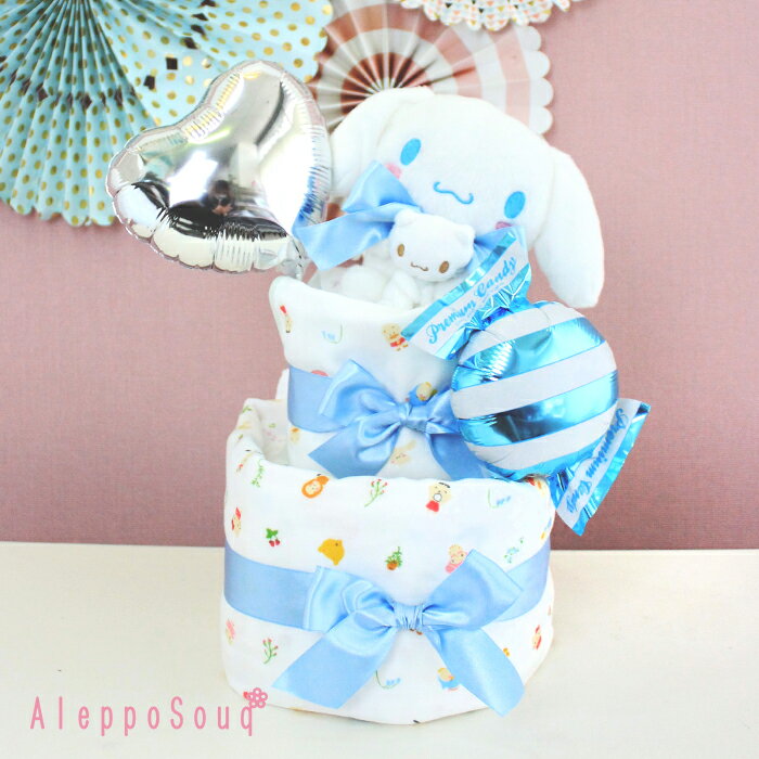 おむつケーキ 出産祝い サンリオ ハグハグ シナモロール 2段 Sanrio おくるみ スタイ ハンドタオル ラトル おもちゃ ぬいぐるみ 送料無料 風船 名入れ無料 CINNAMOROLL シナモン 赤ちゃん ベビー キャンディ 名入れ バルーン 女の子 男の子 ペアぬいぐるみ