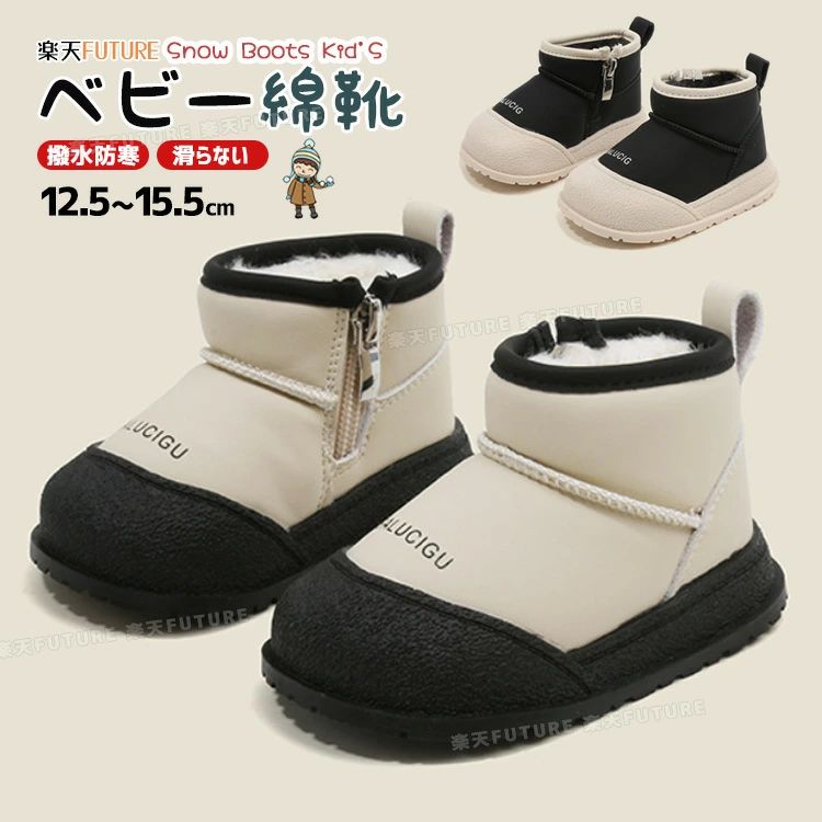 ベビーブーツ スノーブーツ キッズ 滑らない ブーツ 黒 ベージュ 冬 撥水 防寒 幼児 女の子 男の子 子供 12.5 15.5cm ボア ブーツ ショート スノーシューズ 赤ちゃん靴 1歳 2歳 3歳 4歳 裏ボア 冬靴 あったか モコモコ 可愛い お出かけ 外遊び 軽量 出産祝い 歩行サポート