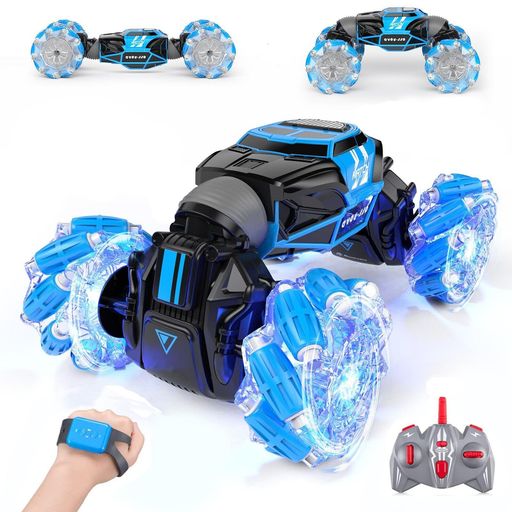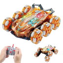 こども向けオフロード スタントカー RCカー 子供向け 大容量バッテリ2個付き 2.4GHz リモコンカー 専有のジェスチャー機能 360度回転/両面運転/音楽/LEDライト機能 無線制御 操作簡単 初心者適 防振 防水 USB充電 車